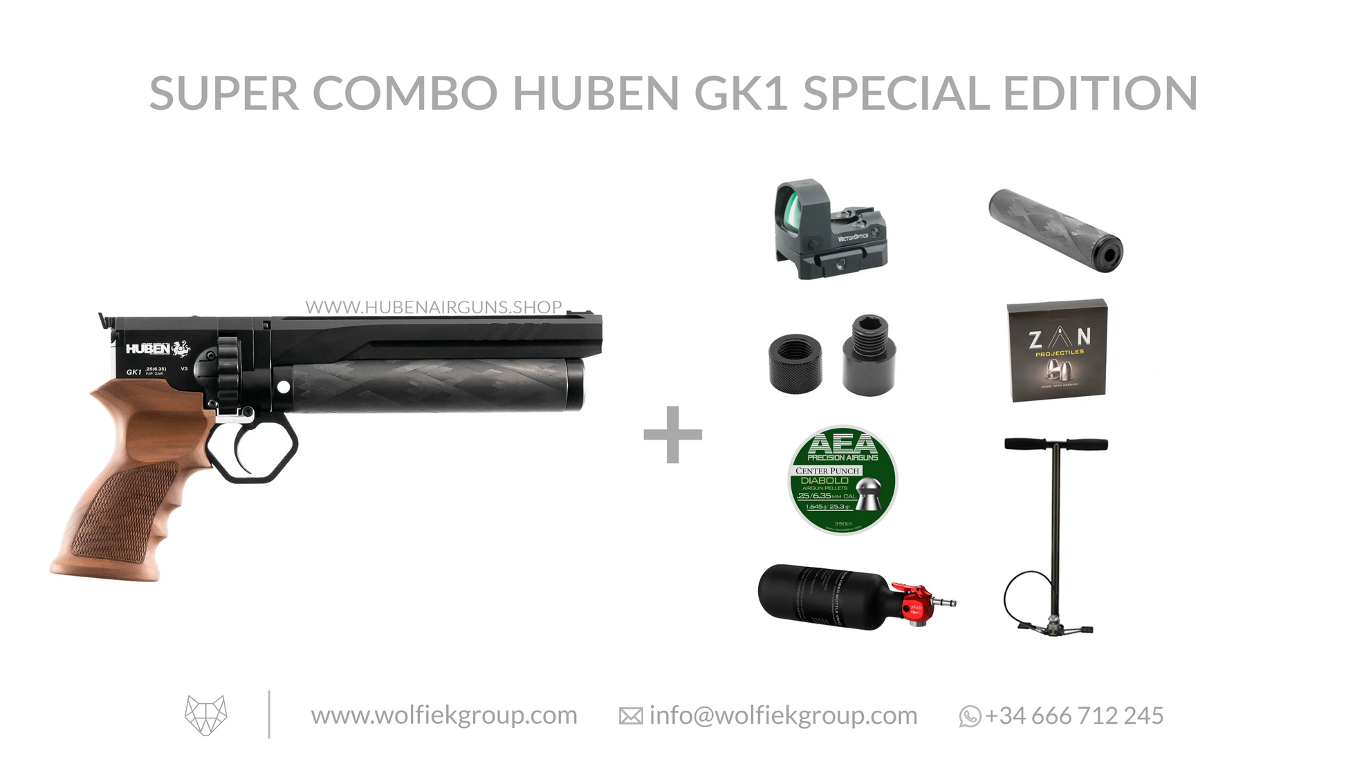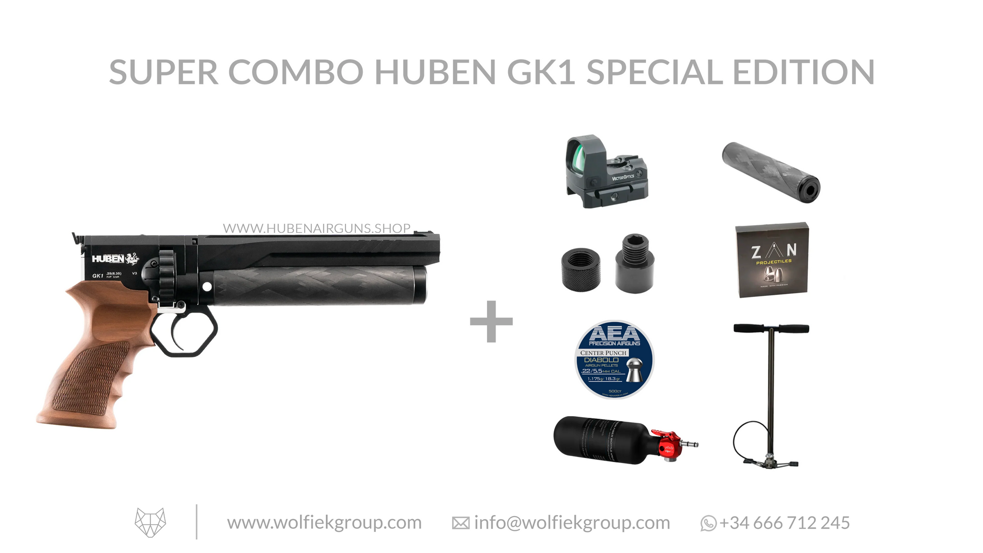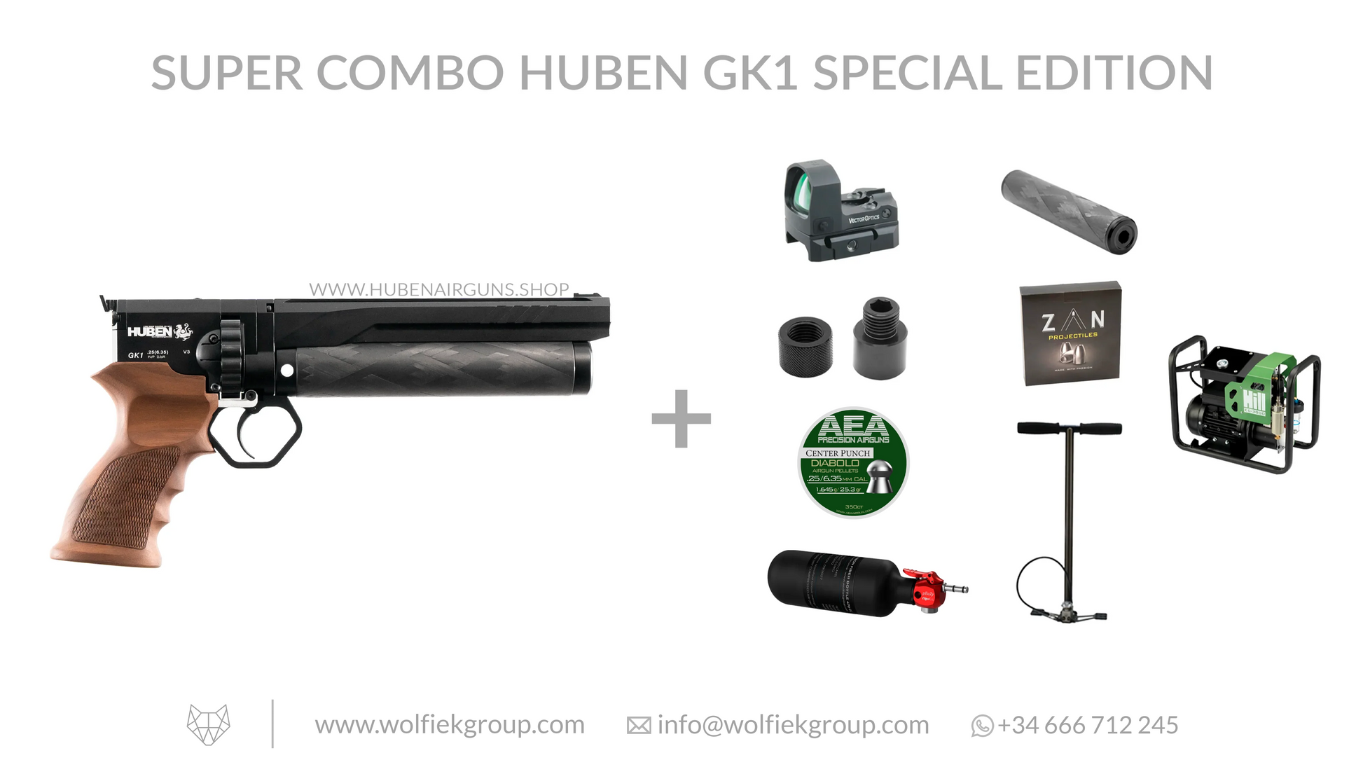 Con la GK1 V3 silenciada gracias al supresor Shadow, este combo incluye munición (balines y slugs, para que puedas probar ambas opciones), ópticas y equipo de llenado. El Frenzy es tu mira de punto verde, te hará la vida mucho más fácil, como lo hará el pEaZy, cuando necesites llenar la pistola con una botella para seguir funcionando. Esta es la pistola de aire comprimido .22 que siempre has necesitado y que necesita poco más de lo que trae este paquete.