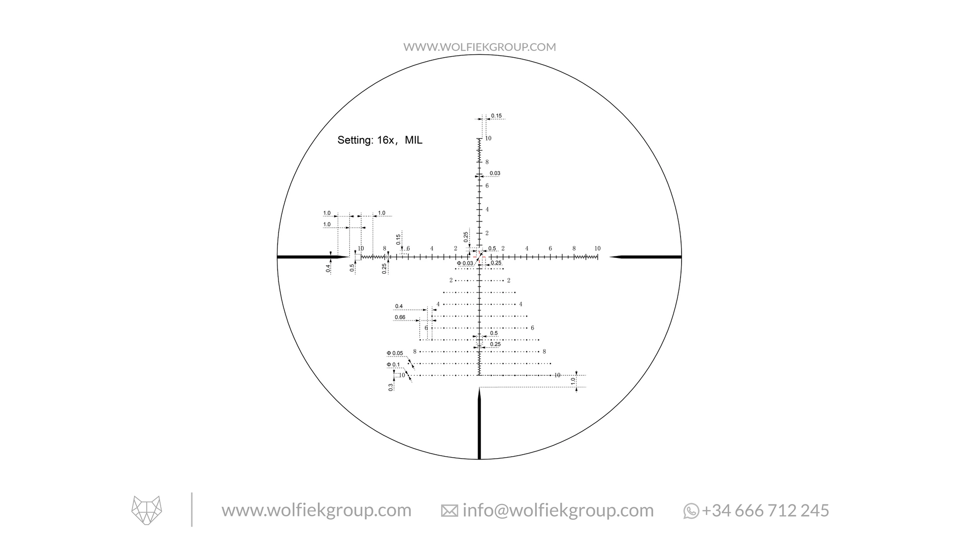 - Click Value: 1/10 MIL, 1cm, 0.1 MRAD
