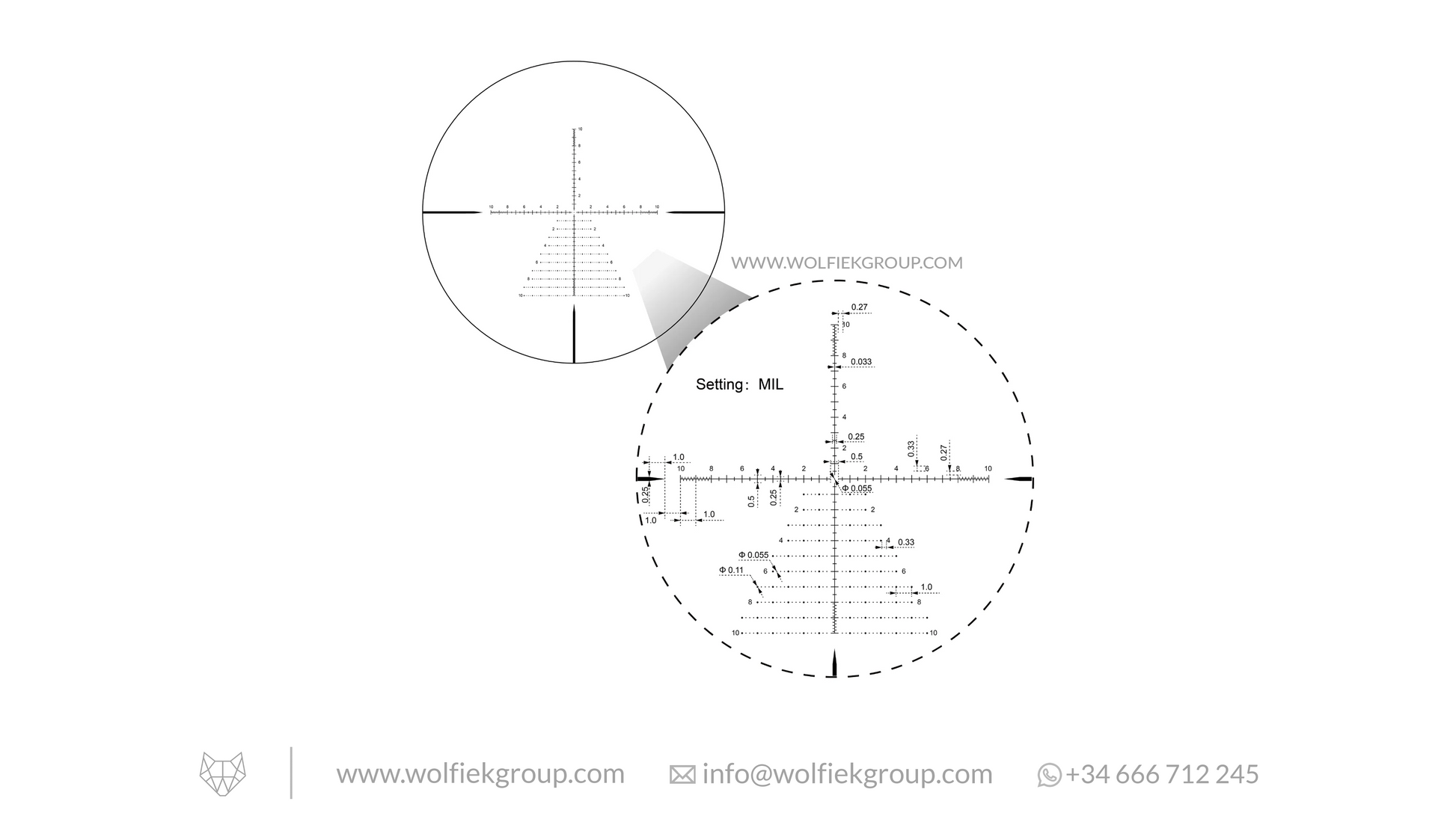 - 1/10 MIL Adjustments: Audible clicks for precision, with a focus minimum from 25 yards.